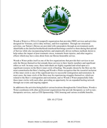 We would like to officially announce that we take pride in supporting our Veterans. We exclusively extend our appreciation through the Non-For-Profit Woods n Water — with fishing supplies donations starting last year towards therapeutic events elevating our Veterans and their families.